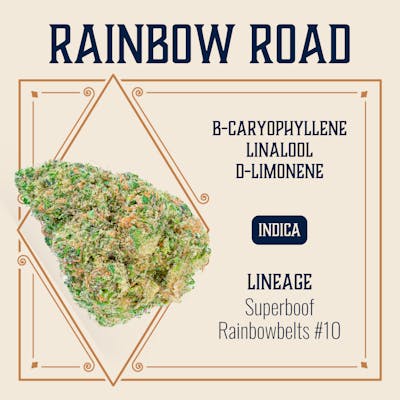 Perfection In a bag. Selected for exceptional genetics, each plant is pampered and harvested only when bursting with beautiful buds. Strain description coming soon! Lineage: Superboof x Rainbowbelts #10 Terpene Profile: b-Caryophyllene, Linalool, d-Limonene