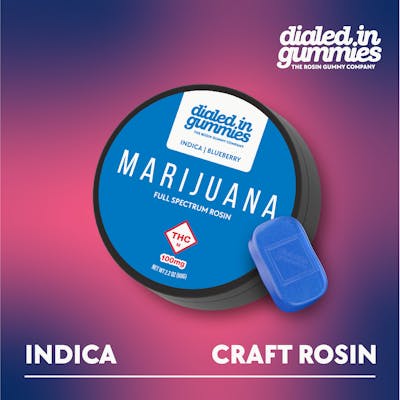 Enjoy our full-spectrum rosin Indica gummies. Crafted in 10 mg servings, each pack holds 10 gummies and rotates through flavorful, award-winning profiles with our signature strain-specific taste and texture. Always solventless, always small-batch—Dialed In for a refined Indica experience.