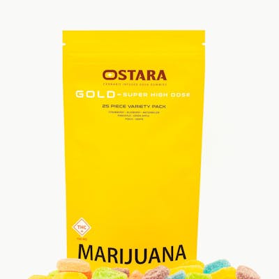Ostara Super High Dose gummies are infused with 30mg THC per piece for a total of 750mg per bag.