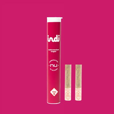 INDI coming to you in a new fun fresh way, utilizing Nuthera flower and infusing with INDI's premium refined distillate, allowing you to now smoke the rainbow. 1g of flower, .3g of INDI distillate per preroll. Refreshing juicy watermelon and sweet candy on every flavorful lightup.