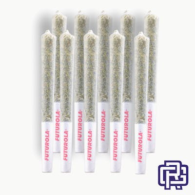 Indica-dominant Hybrid | Genetics: Papaya x Moonbow #75 | Cultivator: Bonafide Cannabis | Inputs: Single Source, Sun-Grown, From 100% Whole Nugs/0% Shake or Trim | Each strain-specific pre-roll pack contains ten (10) half gram (0.5g) straight-rolled pre-rolls for a total of five (5) grams of usable cannabis. | 41.62% Total Active Cannabinoids, 2.96% Terpenes