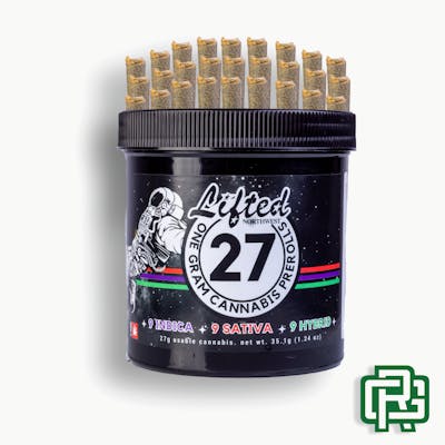 Variety | One (1) Sativa strain (Lumpy Space Princess), one (1) Hybrid strain (Super Runtz), one (1) Indica strain (Gaszilla) | Cultivators: Rosebud Growers (LSP), Alibi Cannabis (SR &G) | A variety pre-roll pack contains nine (9) full gram (1g) pre-rolls of each strain for a total of twenty seven (27) grams of usable cannabis.