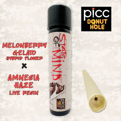 STATE OF MIND | Melonberry Gelato x Amnesia Haze Live Resin (H) | 1G Live Resin Infused Pre-Roll