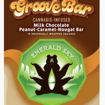 GrooveBar is a delightful treat inspired by the great classic candy bars. Rich milk chocolate, roasted peanuts for the perfect crunch, sweet and creamy caramel, all layered together with our incredibly smooth nougat. Each piece is thoughtfully infused with just the right touch of cannabis to elevate the experience. Enjoy your journey.
