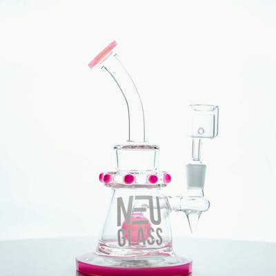 *Colors May Vary* The NEU Shower Head Globe Concentrate Rig is the perfect balance of style and function. This rig is made of thick glass and is equipped with a showerhead percolator and an inner globe that work together to diffuse the smoke. The inner globe or ‘ball’ acts as a splashguard while it redirects the flow of water around the inside of the piece. Comes with 14mm quartz banger.