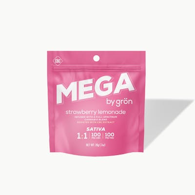 Grön 1:1 Strawberry Lemonade Mega - CBC/THC - Sativa 1/10 MEGA PEARL PER SERVING | 10 SERVINGS PER PACKAGE