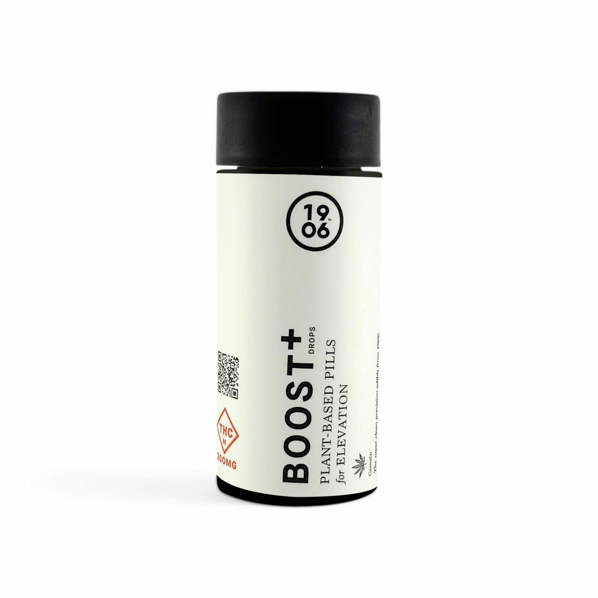 Our all option for higher-tolerance consumers. Many of you have asked for higher dose versions of 1906 experiences. And we've listened. We are excited to announce the launch of BOOST+, a fast-acting THC formula in a 30mg swallowable pill just like all our Drops experiences. BOOST+ is designed for medical patients with a higher tolerance, and it's a great stand-alone option or the perfect companion to all the 1906 experiences. 10 Drops 30MG Per Drop/300MG Per Tin