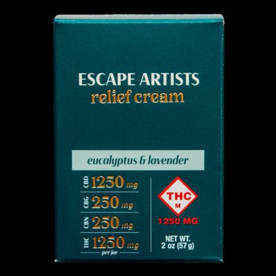 1250mg THC / 1250mg CBD / 250mg CBG / 250mg CBN | wt. 2.0oz. Introducing our most potent and premium formula yet — featuring 3000 total mg of therapeutic cannabinoids for superior benefits. Whether you’re gearing up for the day or pushing through to the end, Escape Artists is here to support you. We’ve elevated our trusted, award-winning topical Relief Cream, delivering our highest potency ever with 1250mg each of CBD and THC and boosted with the soothing effects of 250mg each of CBN and CBG. We’ve infused this 5:1:1:5 ratio blend with our signature Lavender & Eucalyptus essential oil fragrance for a calming, refreshing experience that will leave your skin soft and revitalized.
