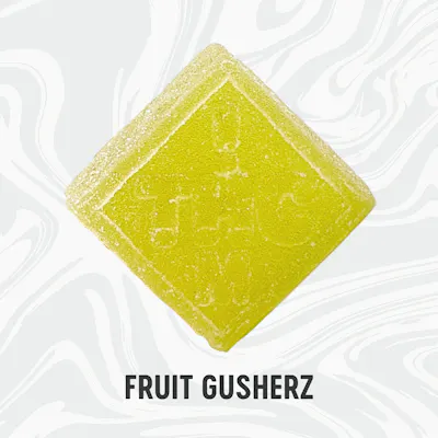 150mg Total | 10 gummies | 15mg Each Strain Description: Fruit Gusherz is an indica leaning hybrid strain with incredible bright green, purple, and orange hairs. Fruit Gusherz has sweet candy like notes with a heavy gassy finish. Triangle Kush and classic Gelato 41 combine to make this deliciously berry-gas flavored strain. Fruit Gusherz has an insane candy nose and incredible bag appeal, similar to the actual fruit gushers they’re inspired by.