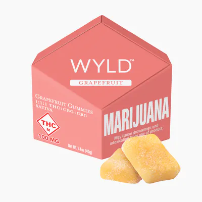 A bright burst of zesty citrus is paired with the inspired combination of THC, CBG, and CBC in Wyld's Grapefruit gummies. Part of our uplifting collection, these Sativa-enhanced gummies are infused with real-fruit ingredients, restorative CBG, and energizing CBC. They're perfect for a game night with friends or exploring nature. Revive | Naturally Outgoing 100mg THC:100mg CBG:100mg CBC per pkg, 10mg THC:10mg CBG:10mg CBC per gummy Ingredients: Sugar, Tapioca Syrup, Water, Gelatin, Grapefruit Juice Concentrate, Citric Acid, Coconut Oil, Natural Flavoring, Cannabis Extract, Pectin (Pectin, Sodium Citrate), Malic Acid, Sunflower Lecithin Contains: Coconut