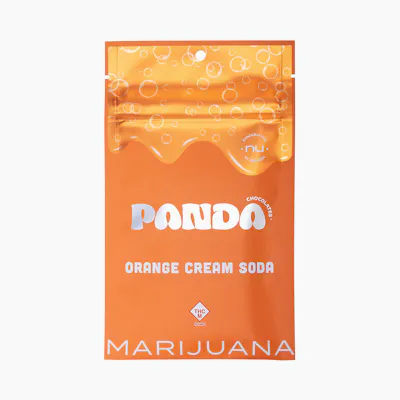 "Pop into the soda shop with creamy white chocolate and carbonated sugar crystals infused with natural orange extract. Panda Chocolate is churned for a full day with predosed cocoa butter to ensure even dosing and maximum efficacy. Always ethically and sustainably sourced. 100mg THC distillate per package. 10mg THC distillate per piece."