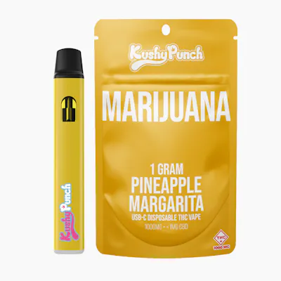 Dive into a tropical escape with each hit of refreshing Pineapple Margarita. The sweet, fruity taste of pineapple is balanced with a punch of lime that makes a complex flavor that will tantalize your taste buds. Each puff will push you deeper into a warm feeling of euphoria that’s perfect for lounging at home pretending you’re on a sandy beach in the caribbean. - 1g of premium cannabis oil - Unique Kushy design - USB-C rechargeable - Fully Disposable