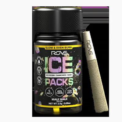 Rove Ice Packs, the world’s first triple-infused preroll. Made with premium-grade flower fully-infused with THCA diamonds and solventless ice hash rosin then they're expertly rolled. Super smooth and ultra potent, Rove Ice Packs test up to 40% THC. Welcome to the next evolution of prerolls. Premium Organic Flower.