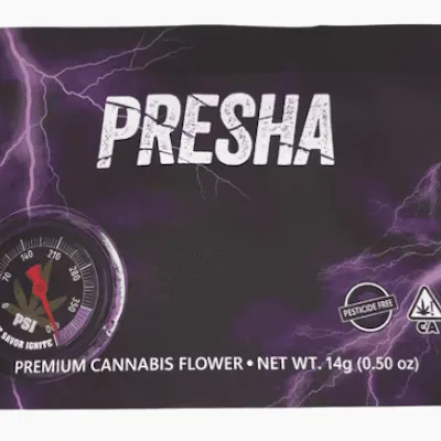 Bred for those who thrive under intensity, PRESHA OG hits with deep, grounding waves that melt tension and quiet the noise. This powerhouse Indica cross of Han Solo x GMO brings rich, earthy gas layered with pine and spice—classic OG character with an amplified edge. Expect a slow-building body buzz that expands with every inhale, easing you into a calm that feels both heavy and alive. PRESHA OG is your storm shelter after a long day—potent, pure, and pressure-tested for maximum chill. Feel the pressure. Ride the storm. Pesticide-free. Greenhouse-grown. Uncompromisingly clean.