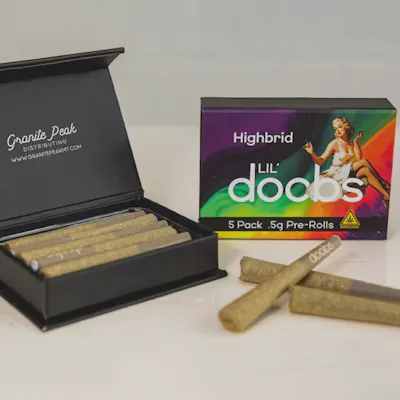 Indica 70% Indica / 30% Sativa 5 Pack of 0.5g Doobs in a Magnetic closure box. Ideal for the person who just likes a lil’ of all one strain. Crafted with premium buds and finished with a Dutch Crown. Available in Sativa, Hybrid, and Indica.