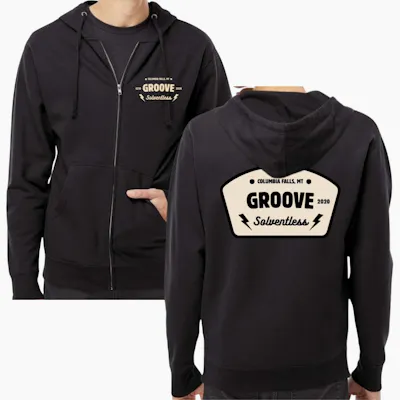 Strike the balance between cozy and carefree with this black full-zip hoodie, featuring lightning bolt accents and our Groove Solventless logo—established in 2020, Columbia Falls, MT. Midweight, soft, and built to move with you, it layers effortlessly without the bulk. Perfect for crisp Montana mornings, relaxed evenings, and everywhere the Groove happens to take you.