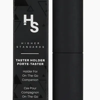 The Higher Standards Taster Holder is a premium pocket-sized companion that accommodates your on-the-go lifestyle. Designed to perfectly fit the Higher Standards Glass Taster or a pre-roll, the holder's aluminum-cased interior traps odors and protects from damage. Crafted with a rubberized finish, the Taster Holder provides a comfortable grip and optimal portability.