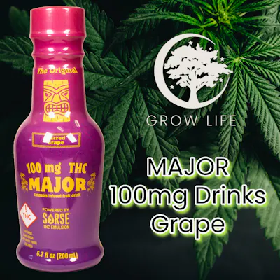 Small, but mighty – MAJOR packs a major punch. Throw it all back at once or make it last by micro-dosing, MAJOR is designed to be an affordable high dose THC beverage that delivers a safe, consistent, and enjoyable cannabis experience with no cannabis taste or smell. - MAJOR offers an alternative solution using a proprietary water-soluble micro-encapsulation for the fastest onset, with zero settling, perfect dosing, and a one-year shelf-life stability. - 200 ml (6.7 fl oz) - 100mg THC
