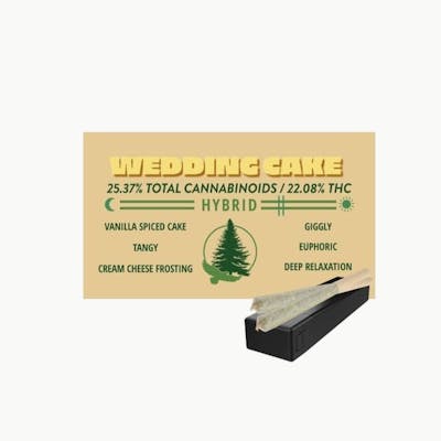 Wedding Cake is an indica-dominant hybrid created by crossing Triangle Kush with Animal Mints. This strain is renowned for its potent effects and rich, dessert-like flavor profile. Wedding Cake delivers relaxing and euphoric effects that calm both the body and mind accompanied by an elevated mood. Flavors: Vanilla Spiced Cake, Tangy, Frosting Effects: Giggly, Euphoric, Deep Relaxation