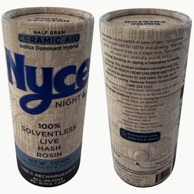 This NYCE Garlic Cocktail 100% Solventless Live Hash Rosin 0.5g Indica-Dominant Hybrid All in One Disposable Vape Is Aimed At Experienced Users Looking For A Potent, Full-Spectrum, & Flavorful Experience. Strain Characteristics & Effects The Type: Indica-Dominant Hybrid. Genetics: A cross of GMO (Garlic Mushroom Onion) And Mimosa. Terpene Profile: Often Includes Limonene, Caryophyllene, And Pinene. Flavor/Aroma: Savory Garlic, Herbal Notes, And A Citrus-Tangerine Finish. Extraction: Solventless Cold Cure Live Hash Rosin (Uses Heat & Pressure Rather Than Chemicals). Effects: Known To Provide A Relaxing, Calm, And "Happy" Experience, Often Used For Evening Unwinding (Hence "Night") To Reduce Tension. New York's Nycest: New York Concentrates & Exctracts (NYCE) Cannabis is committed to making the nycest rosin-based products in the Empire State. Our rosins, rechargeable all-in-one vapes, and gummies are always live, pure, and solventless.