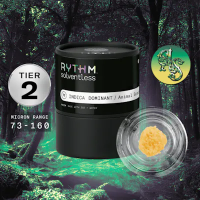 Animal Scout | Tier 2 Solventless Live Rosin | 2g"RYTHM’s team uses just ice, water, heat and pressure to craft Live Rosin extracts. The result: 100% chemical-free solventless vapes that are the culmination of clean AF, true-to-plant taste—exactly like their growers intended. Expect only the plant's purest quality and most complete terpene profiles. Plus, much like fine wine, the rosin in RYTHM Solventless develops unique flavors as it ages. Their team is especially psyched about the smooth, long-lasting tastes that linger on the palate, easier exhales and gentler nose feel. Cannabis connoisseurs, this one’s for you |RYTHM Tier 2 Solventless Concentrates are high quality, slightly lower in potency and terpenes than Tier 1. Micron Range: 73 -160|[orig. Brownie Scout x Animal Face] is a relaxing hybrid with a flavor profile that’s earthy on the inhale with a rich, chocolatey finish.?"