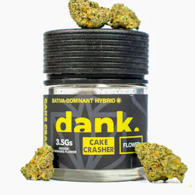 Cake Crasher | Jar | 3.5gCake Crasher starts dreamy and creative, then slowly pulls you into full relaxation. A hazy, euphoric headspace eases stress up front, followed by a heavy body calm that settles you into the couch. Smooth, soothing, and best saved for when you’re ready to fully unwind.