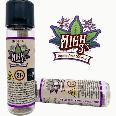 (Indica) Blueberry Ice Pop X Blackberry OG x White Truffle | .8g PrerollAll High5s Pre-Rolls feature a unique 5x infusion:1. Diamonds2. Rosin3. Kief4. Sugar Wax5. DistillateHandcrafted with a clean and potent burn, High5’s are the one of a kind elevated experience you've been searching for. Rolled and infused with the highest quality flower, rosin, sugar wax, kief, diamonds and distillate for a full spectrum effect. Share with friends or enjoy on your own. But be careful, this product is for experienced cannabis users.