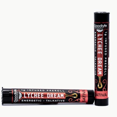 Lychee Dream - [Sativa]- INFUSED 1g Pre-RollsStrain Description: Lychee Dream is a sativa dominant hybrid strain dripping with juicy sweetness and exotic richness that turns into an unforgettable, otherworldly experience. This strain has a mix of pink-glazed fruitiness, reminiscent of ripe strawberries, sugary pears, and tangy peaches soaked in simple syrup — along with warm floral notes of rosewater and orange blossom. Lychee Dream will give you a boost of energy, perfect for heady, talkative social gatherings — it’s a real mood setter. Its dominant terpenes are Limonene, Myrcene, and Ocimene.