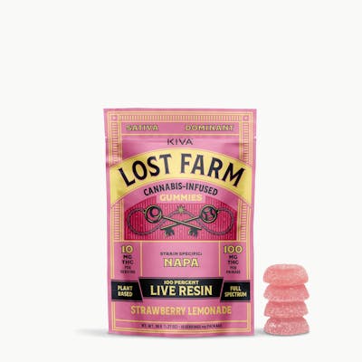 Strawberry Lemonade x Napa | 100mg | 10pkNAPA STRAIN NOTES:With robust notes of grapefruit and fresh grapes, this wine country inspired Sativa strain is a cross of Zin and Sour Pinot.FLAVOR NOTES:The citrusy tones of the Napa strain serve as the foundation for the sweet yet sharp, juicy sweet citrus taste of this delicious strawberry lemonade gummy.