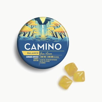 5mg: 5mg CBD 'Balance' Yuzu LemonIn the midst of life's chaos, from juggling stress at work to navigating personal relationships, it's no wonder we sometimes find ourselves feeling off-kilter and in need of grounding. When stress weighs heavy and you're yearning to reclaim your sense of equilibrium, turn to Yuzu Lemon 'Balance' Camino gummies.The harmonious combo of 5MG THC and 5MG CBD creates a welcomed shift in your perspective- almost like discovering a hidden Zen garden landscape right in your own background.THC, often associated with feelings of euphoria, plays a role in promoting balance and well-being by enhancing the activity of the Endocannabinoid System, which helps the body re-establish and maintain homeostasis.CBD, most known for its calming effects, works synergistically with THC to promote a sense of tranquility and equilibrium without overstimulating side effects.As you indulge in the sweet, exotic flavors of Yuzu, you'll feel tension melt away and a wave of serenity wash over you. Yuzu Lemon 'Balance' Camino gummies empower you to prioritize your health and well-being and embrace the journey to inner harmony.Terpenes: Limonene, Beta-Caryophyllene, Myrcene, Nerolidol, Humulene