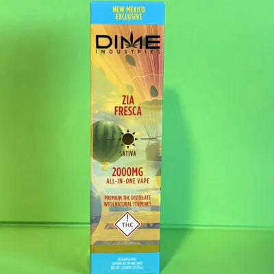 Zia Fresca brings a cool and refreshing twist to the desert heat. Inspired by the classic agua fresca, this limited-edition blend of ripe watermelon and tangy lime delivers a crisp, mouthwatering hit with every puff. Crafted exclusively for New Mexico, Zia Fresca honors the Land of Enchantment with a flavor as vibrant and lively as the state itself. Powered by Dime Industries hardware, this device offers 3 heat custom settings (4.2v to 3.2v), pre-heat function, easy air flow, and is USB-C rechargeable. Give your buds a delicious treat backed by the industry's most powerful battery!