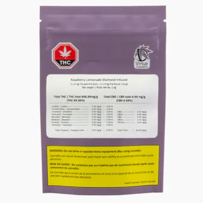 Virtue Cannabis - Raspberry Lemonade DMD Infused Pre-Roll 5 x 0.5g