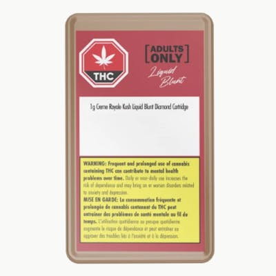 The Crème Royal Liquid Diamond Blunt Cartridge is crafted with real diamonds from a premium hydrocarbon extraction process and flavoured with botanical terpenes. This cart delivers a bold, true-to-flower taste—no rolling, no crumbling. This sweet, creamy vanilla cartridge is loaded with real liquid diamonds for a smooth, full-bodied pull.