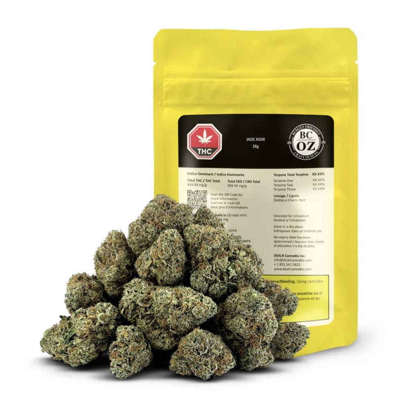 Scale brings its own presence here. Drawn from Zkittles × Cherry Noir, Jade Noir is an indica-dominant expression that carries a darker, more saturated visual tone across the lot. The structure shows substantial weight and consistency, with resolute formation and a dense, cohesive feel throughout the zip. It opens restrained, then deepens into noir sweetness paired with fruity undertones and a hint of cherry that ties the lineage together. With even structure and alignment, Jade Noir maintains cohesion across the board.