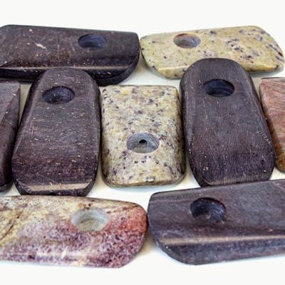 -5 piece set -3.25 inches long -Natural stone hand pipe -Sanded stone bowl & body -Color, size, & style may vary These Smooth Flow Stone Pipes measure 3.25 inches long and are made from smoothed stone for a solid look and feel. Pipes come in a variety of different colors and styles. -