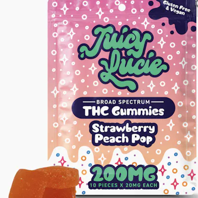 Juicy Lucie Strawberry Peach Pop Gummies 200mg (Vegan)