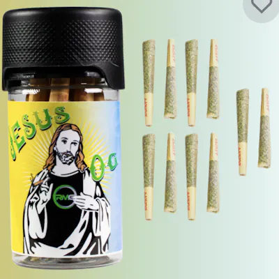 10 Pack - 10 X .5 Gram Prerolls Per Pack Jesus OG: All hail the king! This fiery Sativa has a long held lineage as the reigning sativa champion. There are endless details to look at within these nugs. Striking pistils and fields of keefy trichomes, you will be stuck staring at these beautiful buds before throwing them in the grinder. Containing and dominated by the unique “Terpinolene” and followed by hops and cinnamon. Touch the skies and enjoy the amazing mind high from Jesus OG.