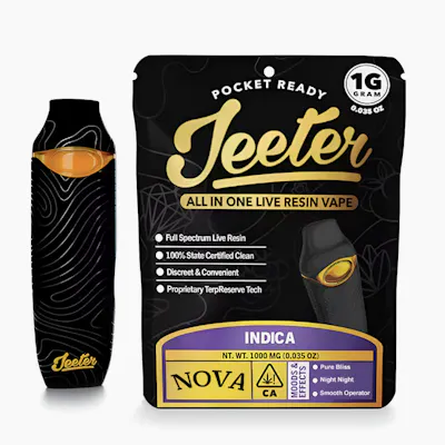 Jeeter’s 1 gram AIO Live Resin Disposable is engineered for flavor chasers who appreciate clean, full-spectrum live resin in a discreet and practical format. With strain-specific options, USB‑C charging, and thoughtfully designed hardware, it's ideal for versatile use in any setting.