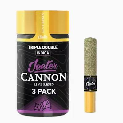 The Jeeter Triple Double Cannon is an indica-dominant infused pre-roll product that combines indoor-grown flower with full-spectrum live resin. It is designed to emphasize the natural flavors of the cannabis plant