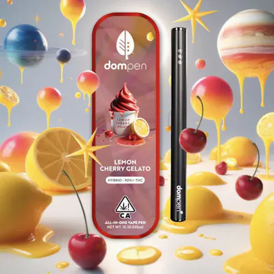 About dompen dompen all-in-one cannabis vaporizers contain a total of 1g of high-grade cannabis oil. dompen has established itself as a leader in the all-in-one vaporizer category over the past decade, with growing sales across North America. With optimized airflow, clog-prevention technology, and a next-generation proprietary ceramic wick, dompen has been designed for performance. Additionally, with recharging capabilities and no buttons, dompen is an easy way to consume cannabis on the go, without hassle. About The Strain Lemon Cherry Gelato is a balanced hybrid strain that packs sweetness and aroma. Whether it’s noon or evening, this balanced formulation provides versatility for anytime use. This strain is from our most popular and most potent line, dompen Classic, and tests at 90%+ THC. Infused with flavorful fruity terpenes to guarantee a discreet and consistent experience wherever, whenever.