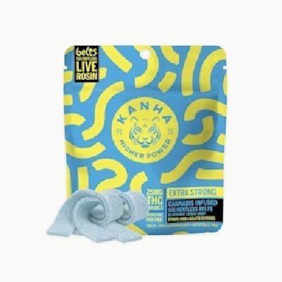 KANHA NANO Hybrid Blueberry Lemon Drop Solventless Live Rosin Belts 25mg THC per belt/100mg THC per package Feel the perfect balance with our Blueberry Lemon Drop Belts, a vibrant Hybrid mix designed for the harmony hunters. Formulated with GMO Cookies and Gelato solventless live rosin for a comforting, mood-boosting journey. Instructions: Eat 1 serving. Onset starts around 5-15 minutes. Wait 60 minutes for full effect. Keep in a cool, dry place. Avoid temperatures over 75°F. Ingredients: Tapioca Syrup, Cane Sugar, Water, Gelatin, Agar, Locust Bean Gum, Citric Acid, Lactic Acid, Natural Flavor, Natural Fruit Concentrate, Natural Color, Carnauba Wax, Solventless Live Rosin Cannabis Oil, Malic Acid, VESIsorb Nanotechnology
