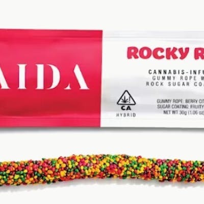 Berry citrus gummy rope encrusted in rainbow rock sugar. 100mg THC per unit. May Contain Egg