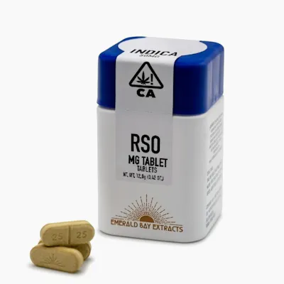 Tablets Potent, versatile, and easy — RSO tablets are ideal for home and on-the-go Strain-specific cannabis sourced from family farms Triple third-party lab-tested Simple ingredients — no additives, artificial colors or dyes