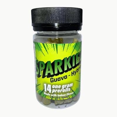 Guava have a great day! Spark up on Sparkiez premium pre-rolls. Sparkiez Guava is a great way to help you make it through your day or long into the night, or both! With a sweet, fruity, tropical flavor, this hybrid strain will have you feeling balanced, relaxed, creative, and most of all, happy. We take 14 grams (½ Ounce) of beautiful indoor flower, no trim, no shake, and roll it into 14 ready to spark pre-rolls. Ready. Set. It’s Sparkiez time! Each pre-roll contains 1G of flower.