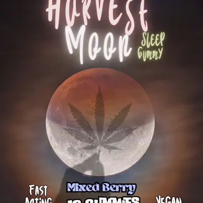 Need a little help getting a good nights sleep? Try our Harvest Moon Mixed Berry Sleep Gummies to get a better nights sleep. Each gummy has 25mg CBD+5mg THC+5mg CBN. These nano gummies will kick in faster to provide the relief you need. 25mg CBD: to relax the body 5mg THC: to put you into a deep sleep 5mg CBN: to relax the muscles and increase a feeling of sleepiness Warning: Cannabis products are not for use by anyone under the age of 21. Cannabis use may cause drowsiness, affect focus, reaction time, and decision-making. These products are not evaluated or approved by the FDA. Pregnant people should avoid cannabis due to the risk of low birth weight, premature birth, stillbirth, and harm to fetal brain development. Warning: Hemp products containing THC are not for use by anyone under the age of 21. Using hemp products containing THC may cause drowsiness, affect focus, reaction time, and decision-making. These products are not evaluated or approved by the FDA. Pregnant people should avoid hemp products containing THC due to the risk of low birth weight, premature birth, stillbirth, and harm to fetal brain development. ALL SALES ARE FINAL