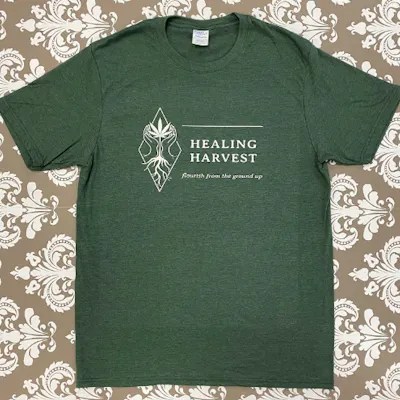 Like our store, our products, our mission? Awesome! Help support our small business by getting our name out there with these great Logo T-Shirts. The logo was designed by a local Minnesota graphic designer and truly captures the essence of Healing Harvest. These shirts are a soft cotton/polyester blend in a variety of colors, all in a heather blend. Soft, lightweight and a comfortable fit. Cotton 60% Polyester 40%