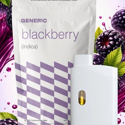 The "Generic" brand from Contract Canna uses the strain Blackberry Kush for its blackberry-flavored disposables. This is an Indica-dominant hybrid known for producing calming and relaxing full-body effects.