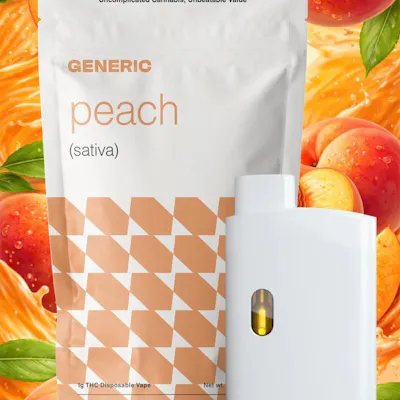 The "Peach" disposable from the Contract Canna Generic brand is the Georgia Peach strain (also referred to as Peach Crescendo or Sweet Peach), which is an Sativa-dominant hybrid known for balancing full-bodied relaxation with a clear, uplifting mental state.