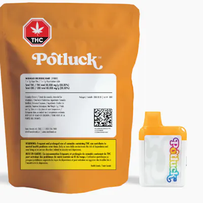 Get swept up in the storm with Mango Hurricane, a bold and flavourful 1g all-in-one disposable vape. This tropical blend crashes together ripe mango sweetness and a zesty citrus kick for a smooth, fruit-forward ride. Part of Potluck’s Tropical Collection, Mango Hurricane delivers potent effects, vibrant flavour, and the best bang for your buck—perfect for flavour chasers looking to bring on the flavour.