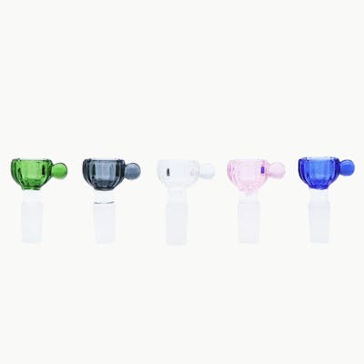 Ribbed Cereal Bowl Size: 14mm Assorted Colors: Clear, Blue, Green, Pink and Grey Sold a Singles SKU: AC-PT-PT1123 *If detailed inventory needed, please call your account representative
